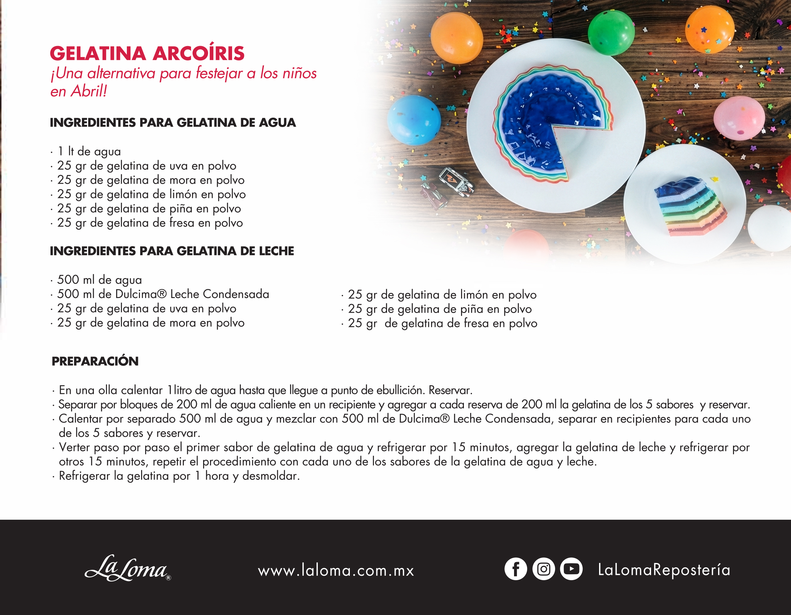 Verter paso por paso el primer sabor de gelatina de agua y refrigerar por 15 minutos, agregar la gelatina de leche y refrigerar por otros 15 minutos, repetir el procedimiento con cada uno de los sabores de la gelatina de agua y leche.