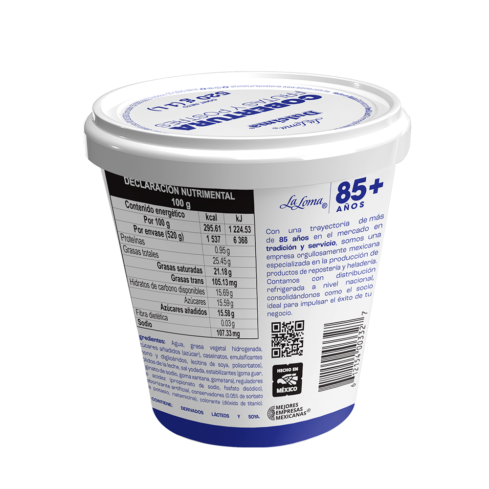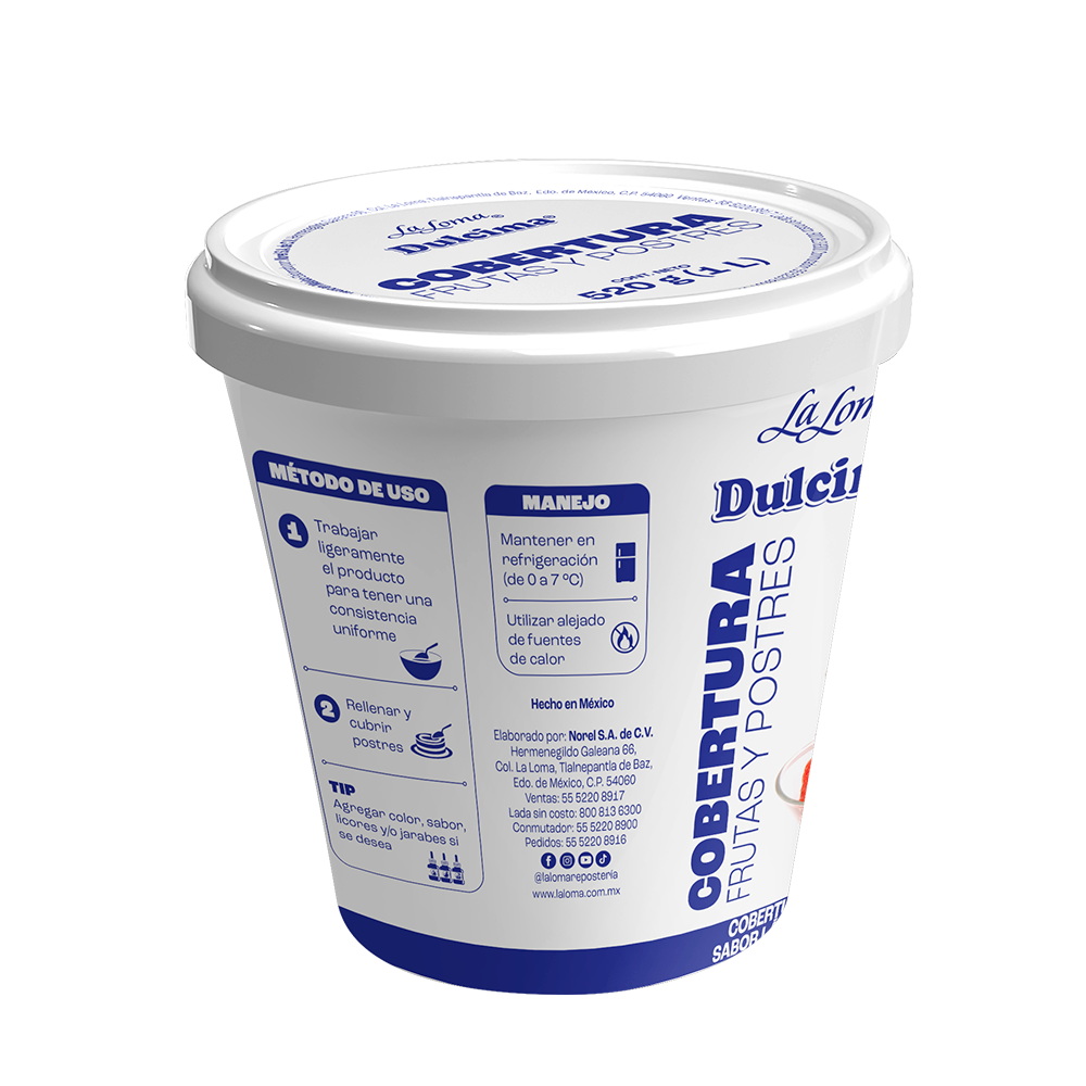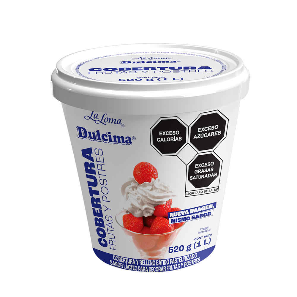 Dale vida a tus postres con Dulcima® Crema Batida Frutas y Postres, una crema lista para usar diseñada para profesionales que buscan practicidad, sabor y presentación impecable. Su textura tersa y cremosa permite cubrir, rellenar y decorar frutas, gelatinas, helados, cocteles de fruta, tartas y bebidas, manteniendo acabados estables por más tiempo, incluso en condiciones de temperatura variables.