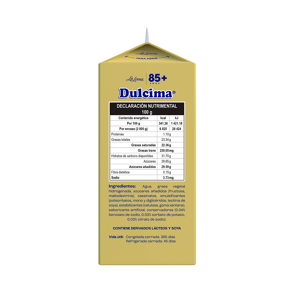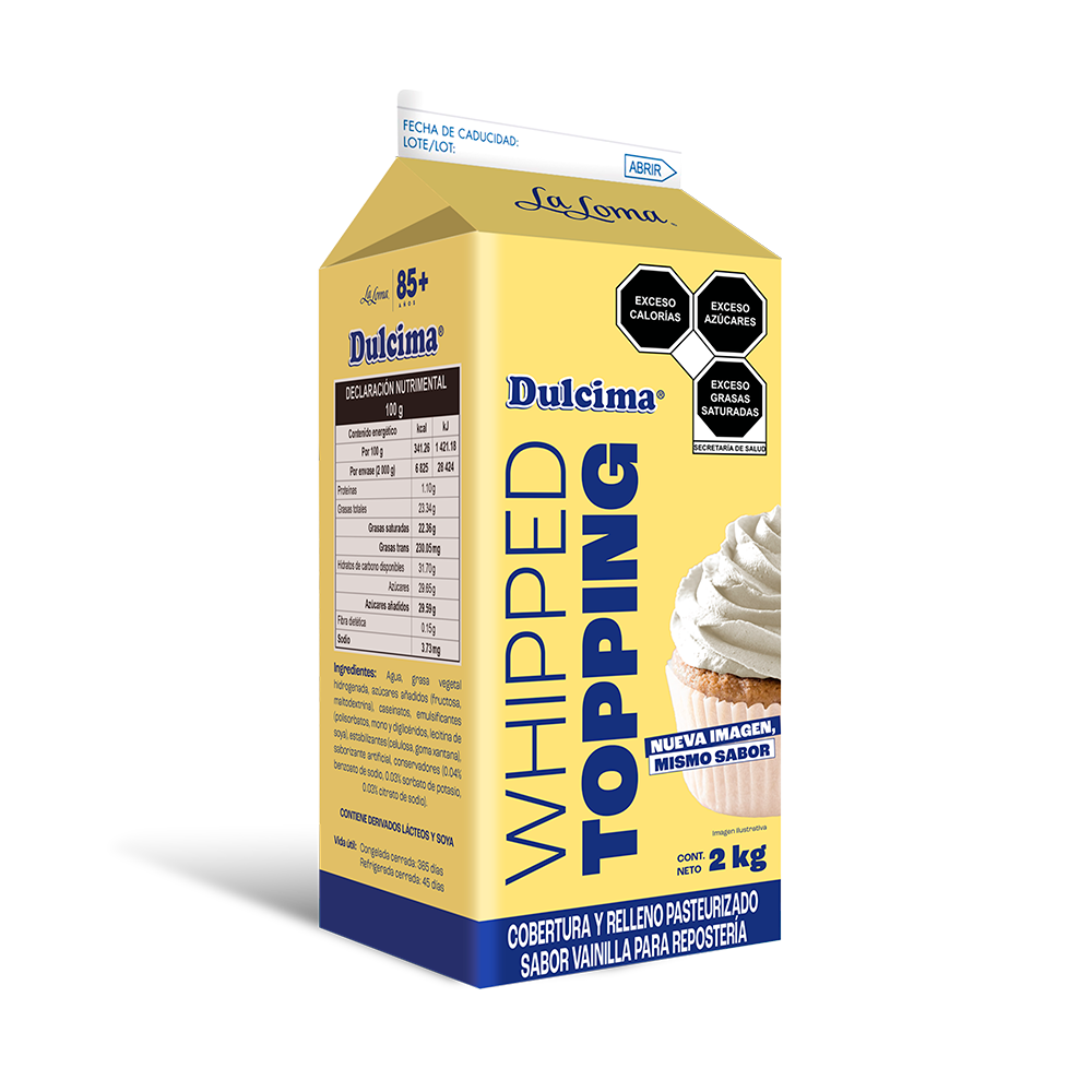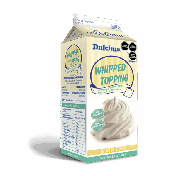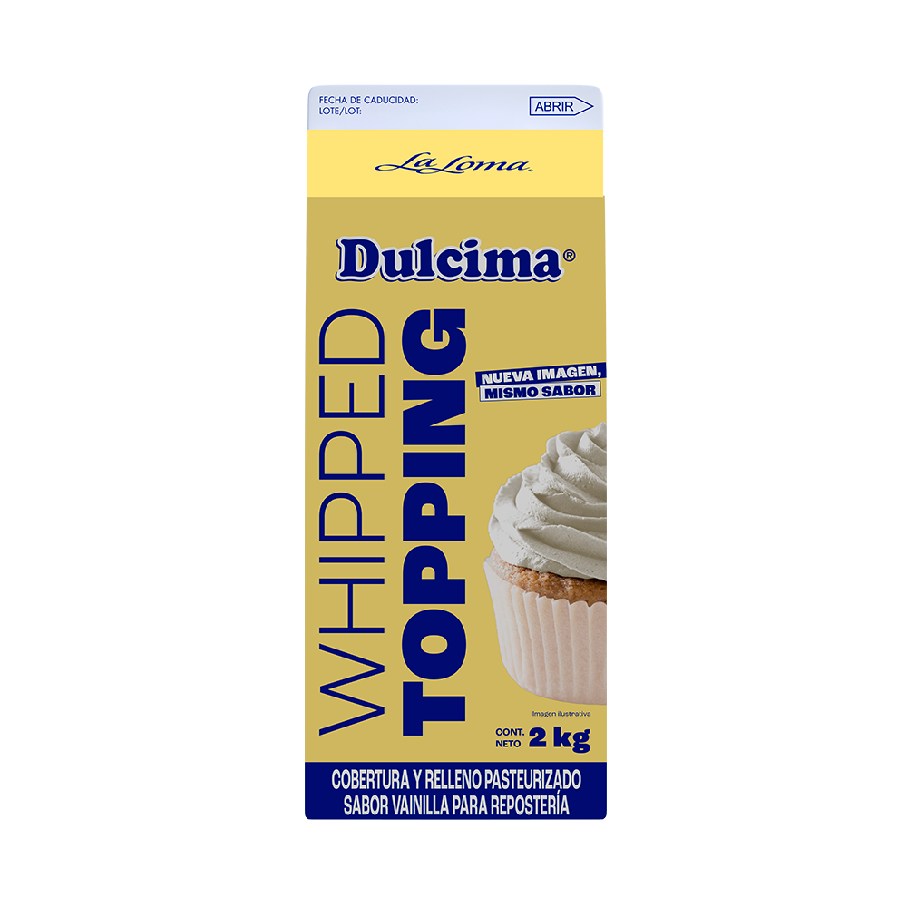 Dulcima® Whipped Topping es la crema batida lista para usar que combina alto rendimiento, estabilidad profesional y sabor suave a vainilla. Con una capacidad de expansión de hasta 400%, permite cubrir y decorar más pasteles con menor cantidad de producto, optimizando costos sin sacrificar calidad.