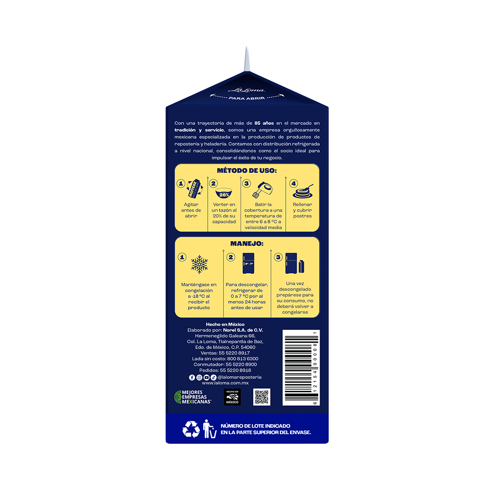 Una vez descongelado, conservar en refrigeración entre 0°C y 5°C para mantener textura, sabor y estabilidad.
